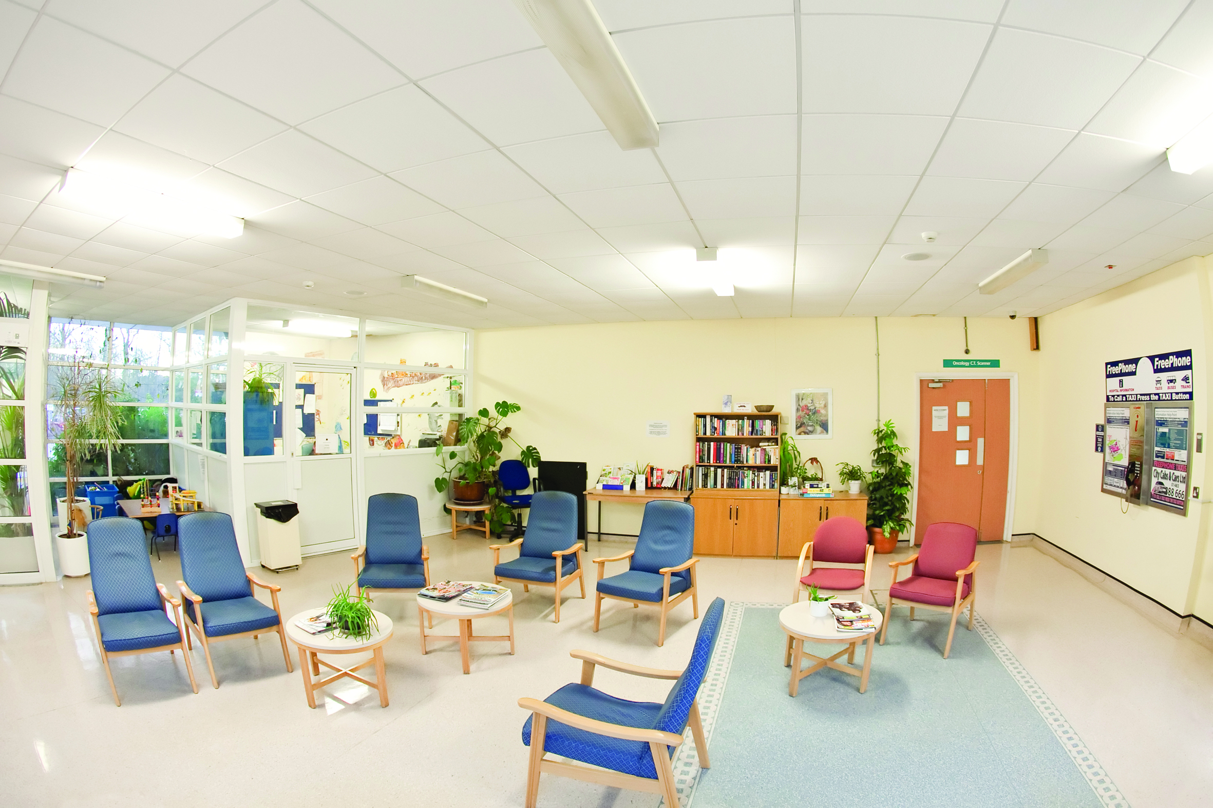 After a major fund-raising campaign led by Monica Rowland (now Simpson) who had lost her husband to cancer two years earlier (Monica is still on the Board of Trustees). In 2001 we became a registered charity. Through further fundraising initiatives and the donation of space from Royal Surrey County Hospital, next to Oncology Outpatients, the Fountain Centre was fully equipped with three treatment rooms, a lounge area, two counselling rooms, a kitchen and an office.
